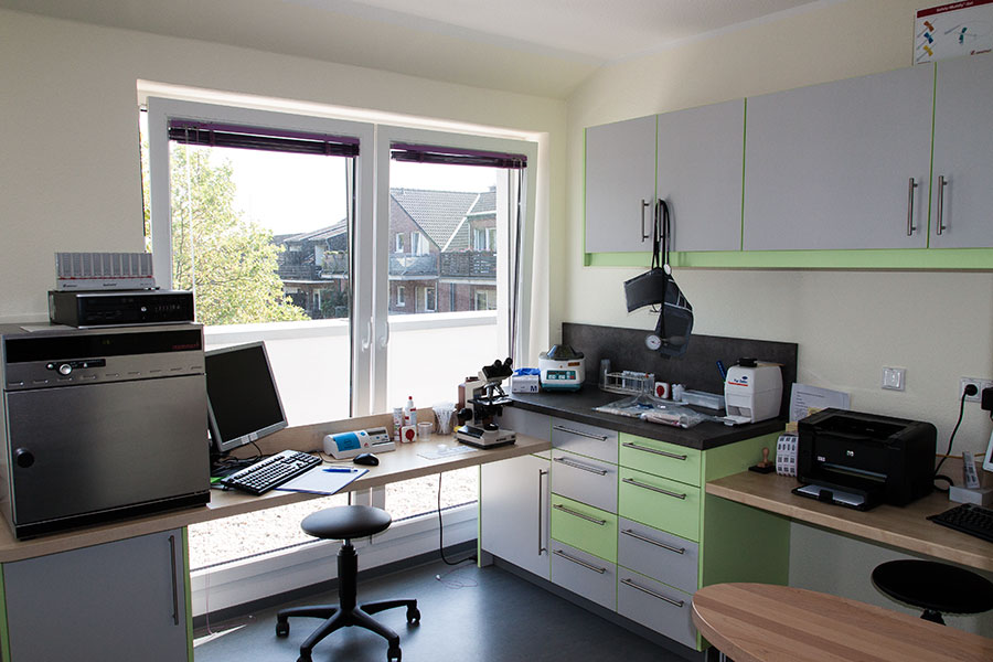 Im eigenen Labor können wir alle wichtigen Untersuchungen sofort durchführen. Dadurch können wir eine Behandlung, z.B. durch sofortige Urindiagnostik bei Entzündungen oder Tumorerkrankungen,